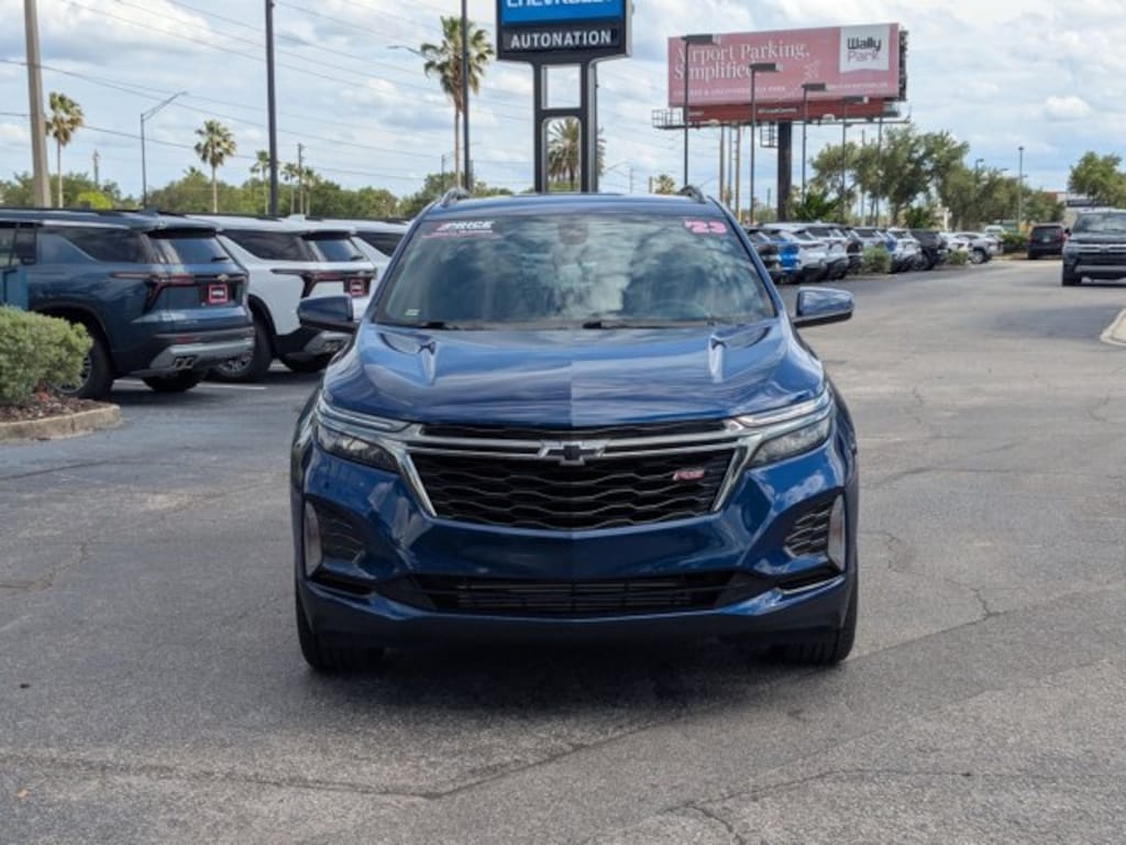This 2023 Chevrolet Equinox RS is offered to you for sale by AutoNation Chevrolet Airport. This Chevrolet includes: TRANSMISSION, 6-SPEED AUTOMATIC, ELECTRONICALLY-CONTROLLED WITH OVERDRIVE Transmission w/Dual Shift Mode A/T 6-Speed A/T BLUE GLOW METALLIC ENGINE, 1.5L TURBO DOHC 4-CYLINDER, SIDI, VVT (STD) 4 Cylinder Engine Gasoline Fuel Turbocharged JET BLACK, PREMIUM CLOTH SEAT TRIM Cloth Seats EMISSIONS, FEDERAL REQUIREMENTS *Note - For third party subscriptions or services, please contact the dealer for more information.* If you're going to purchase a pre-owned vehicle, why wouldn't you purchase one with CARFAX one-owner report. Off-road or on the street, this Chevrolet Equinox RS handles with ease. The less money you spend at the pump, the more money you'll have to spend on you. So why not consider this wonderfully styled, fuel-efficient Chevrolet Equinox. This low mileage Chevrolet Equinox has barely been touched. It's the next best thing to buying new. This vehicle comes with an extra bonus: past service records are included. This Chevrolet Equinox is beautiful and the interior is clean with virtually no flaws. The paint on this Chevrolet Equinox RS is flawless; no scratches, no blemishes, no need to spend extra money on touch ups. We are proud to offer this 2023 Chevrolet that truly a must-have. This vehicle's wheels are one of the many attractive features that this Equinox RS has to offer.
